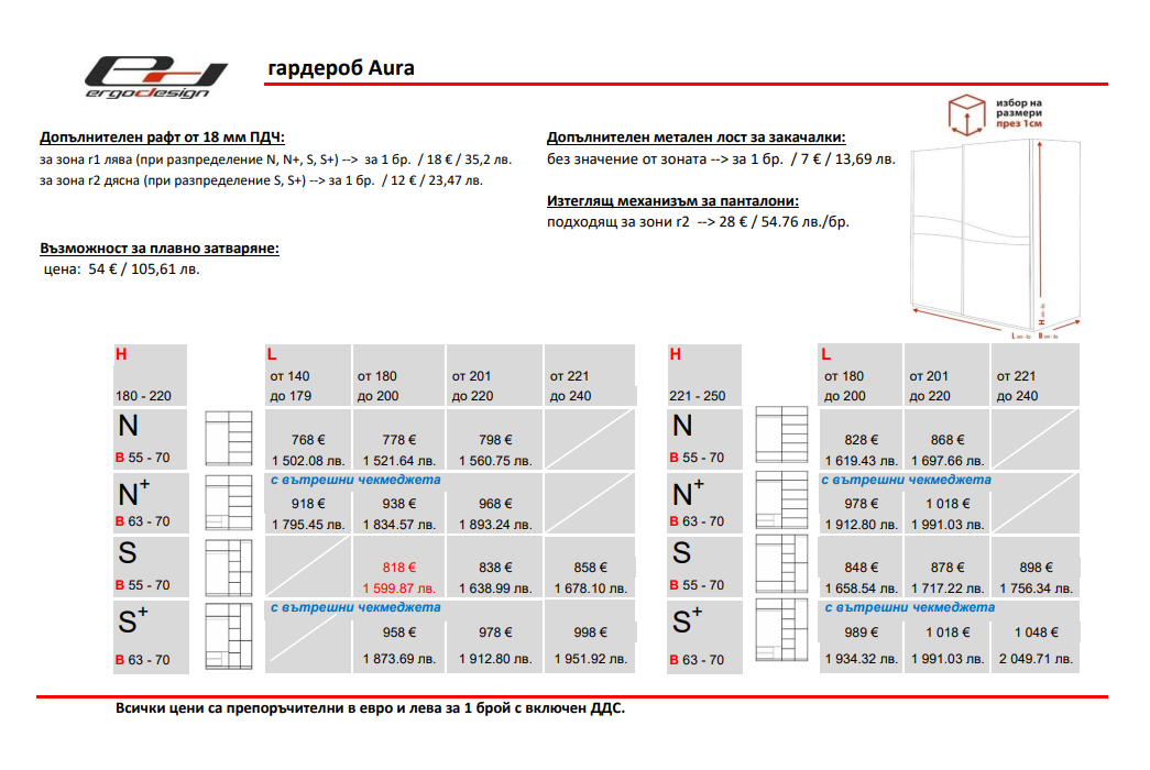 – Механизъм за плавно затваряне – 105 лв./бр.