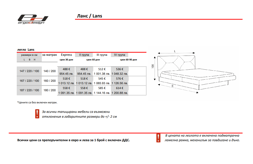 Тапицирано легло ЛАНС / LANS | ЕРГОДИЗАЙН