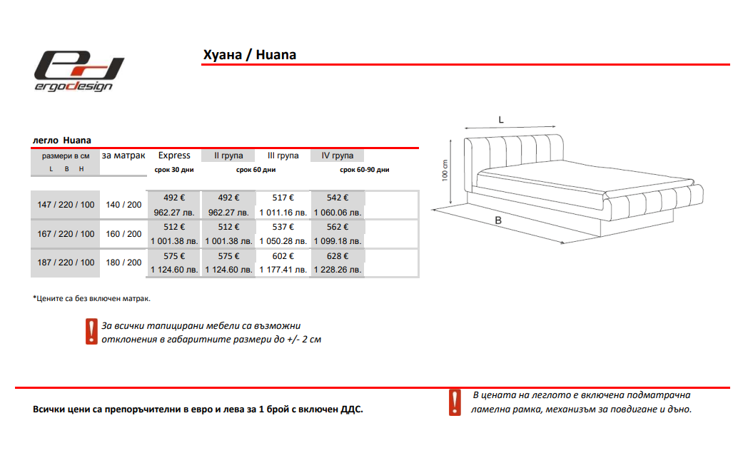 Тапицирано легло ХУАНА / HUANA | ЕРГОДИЗАЙН