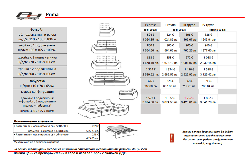 Холна гарнитура ПРИМА / PRIMA | ЕРГОДИЗАЙН