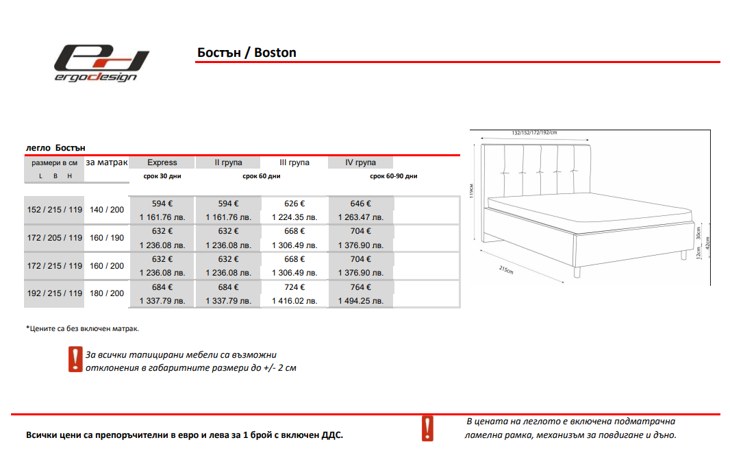 Тапицирано легло БОСТЪН / BOSTON | ЕРГОДИЗАЙН