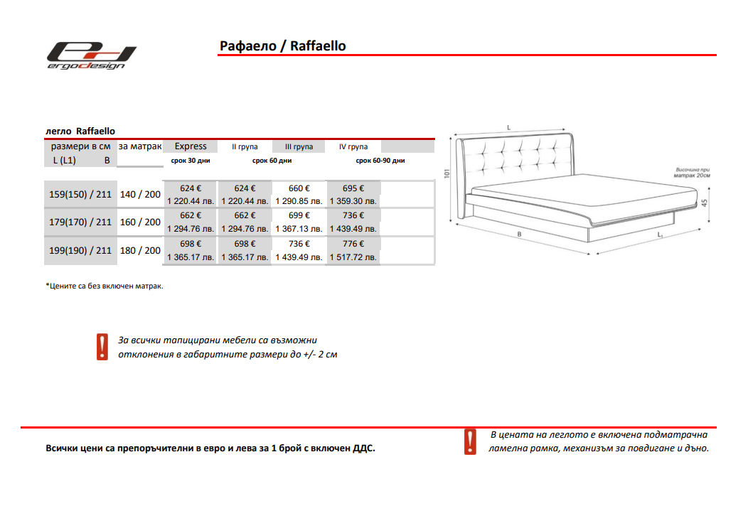 Тапицирано легло РАФАЕЛО / RAFAELO | ЕРГОДИЗАЙН