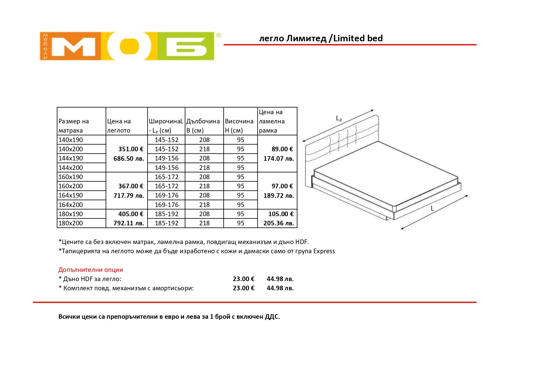 Легло с тапицирана табла ЛИМИТEД | Мебели МОБ