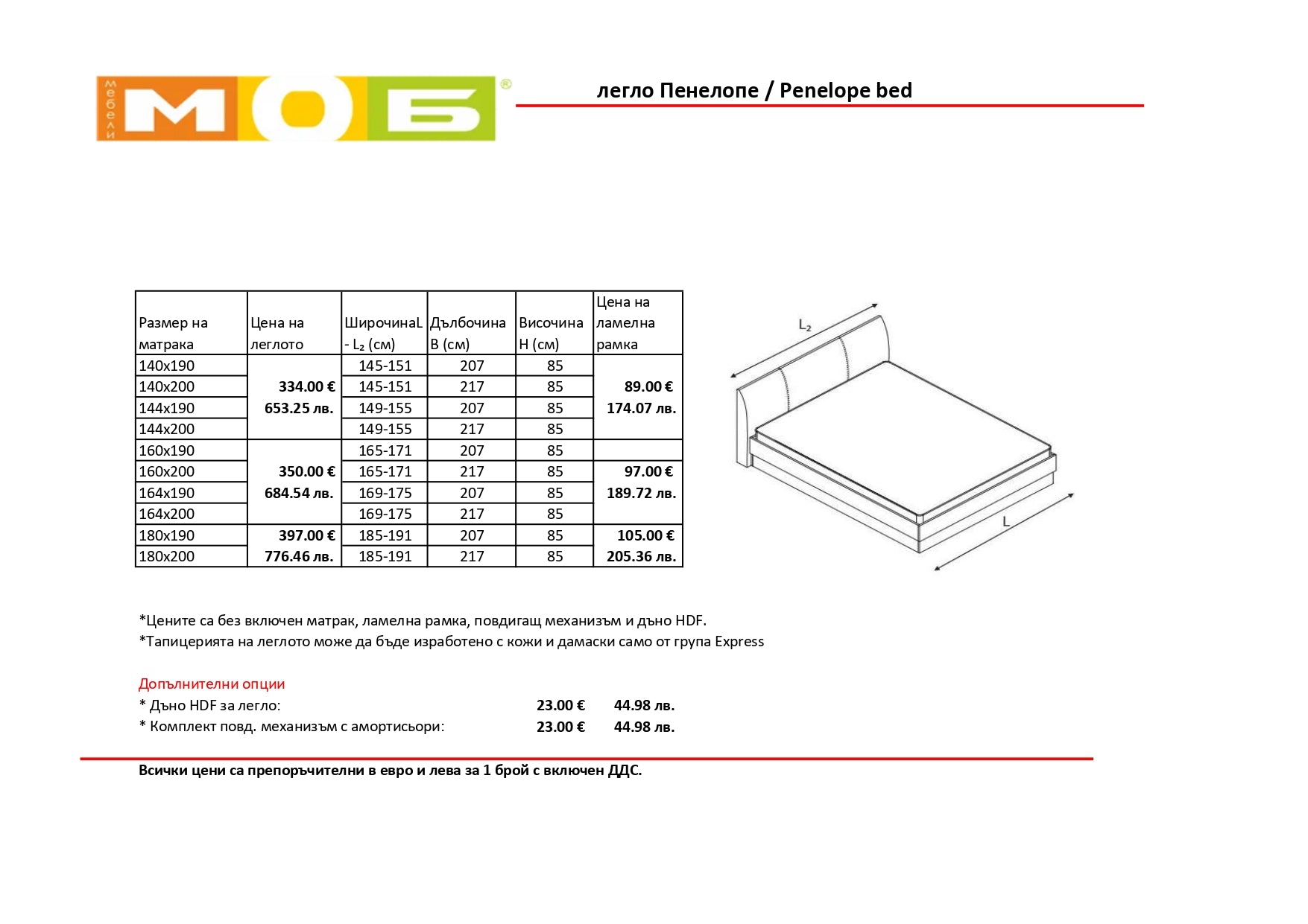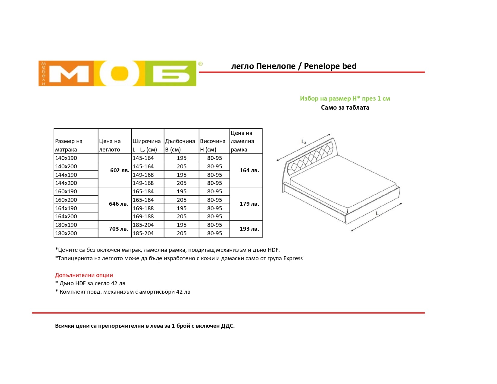 Легло с тапицирана табла ПЕНЕЛОПЕ | Мебели МОБ