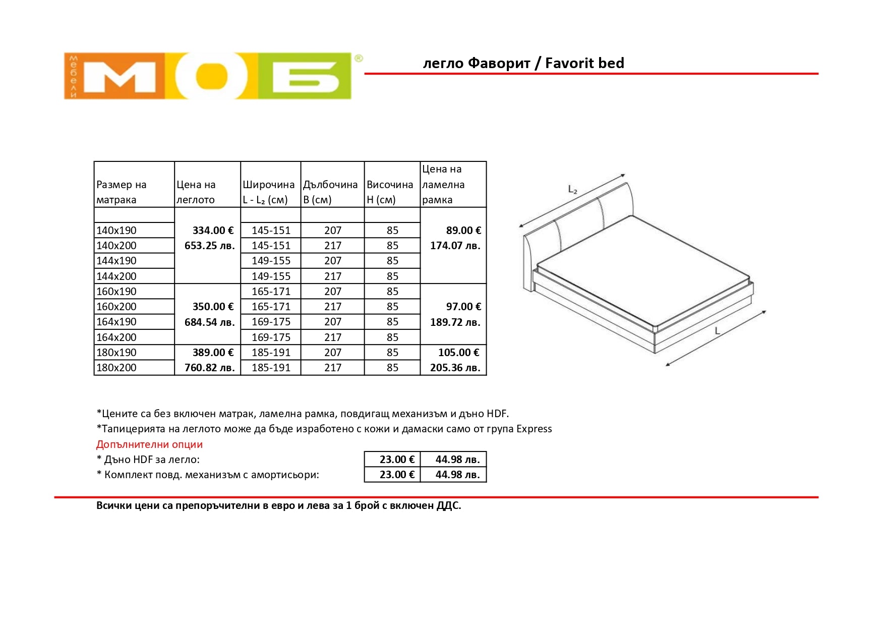 Легло с тапицирана табла ФАВОРИТ | Мебели МОБ